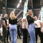 Hot Blonde in Blue Leggings