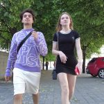 Skinny Curvy Brunette Teen In Brown Flared Pants