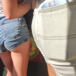 4 asses and legs in denim shorts