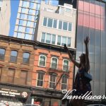 Tall Modelesque Blonde Russian in Ultra Short Pinstripe Dress & Knee-High Boots