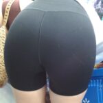 Brunette milf in tight black dress