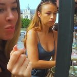 Couple of sexy candid friends having lunch while showing cleavage (part 2)
