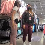 Hot candid thick Nike store employee with a fat ass and camel in leggings and her bonus coworker