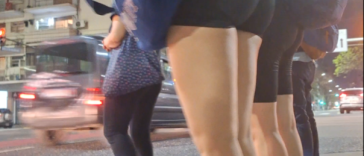 Girl with long hair in leggings