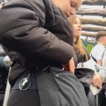 Amusement park #5 part 2 – black leggins VPL blonde teen queue
