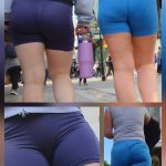 Tall HS blonde in tight blue shorts getting some sushi with mom