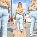 Blonde in tight jeans