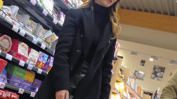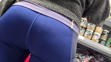 Blonde milf in black leggings