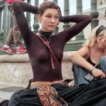 Blonde milf with ponytail with leather skirt.