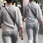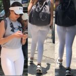 Woman jiggling her legs and cheeks in white leggings