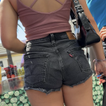 Braless Girl in denim shorts