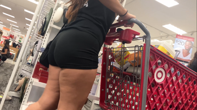 Brunette PAWG Wedgie Picking Spandex Shorts at Target