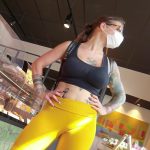 Hot candid badass tattooed chick with great tits in an athletic top and a great ass in yellow leggings with vpl