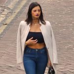 Hot ass candid babe with huge tits in a white tank top and shorts