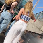 Pretty candid blonde teen with a nice booty and vtl in white pants