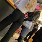 Two hot candid blonde girls at Starbucks with nice asses and vtl in tight pants and jeans