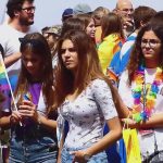 Candid beautiful teen with a nice set in a tight top at a Pride event