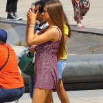 Pretty candid girl in a black top with some slow mo bouncing as she walks
