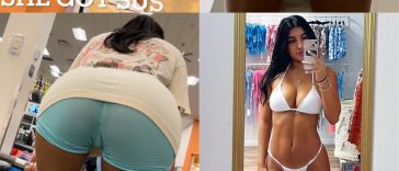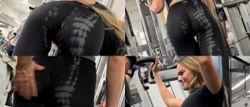Beautiful candid blonde girl sitting in denim shorts with her legs open
