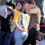 Candid brunette chick at a concert with an incredible bubble butt in tight jeans