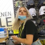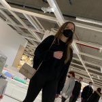 Cute candid masked Ikea girl trying out the beds while her tight booty is in leggings