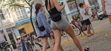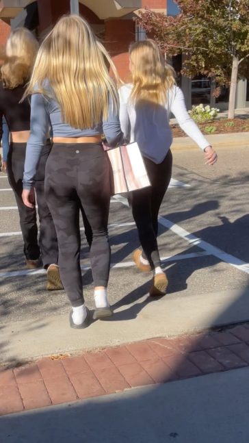 Unreal blond in black teveo leggings and white nike airs – (3x Escalator, Upshots, Closeups, Faceshots)