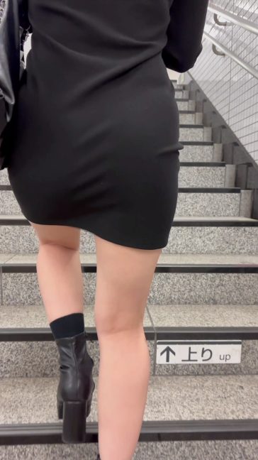 • Candid asian girl in black dress with a nice ass and sexy legs