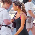 Candid sexy girl relaxing at the park while showing her cleavage and black bra