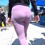 Candid cute Latina teen daughter with a big booty and vtl in lavender Lulu leggings