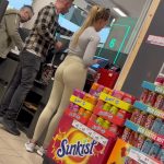 Hot candid blonde girl grocery shopping in TEVEO leggings with a nice ass