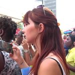 Candid pretty redhead babe showing some cheeks in little denim shorts with another bonus cheeky girl
