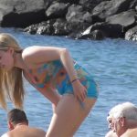 Slender European Fitness Blonde in Make-Up Colored Outfit + Dialing VPL