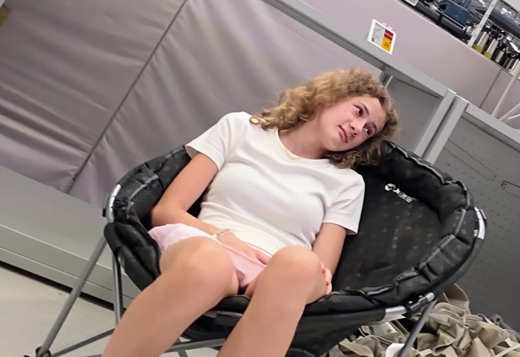 Girl with curly hair with short skirt