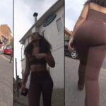 Girlfriend in Seethrough Pants Revealing her Thong to the World