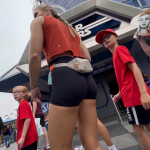 Milf with belly button piercing in leggings