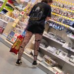 Girl in black denim shorts with interesting patterned tights