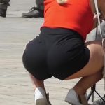 Hot ass candid babe with huge tits in a white tank top and shorts