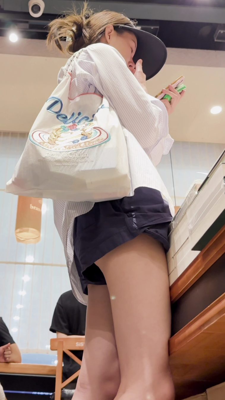 Hot legs candid asian girl in upshorts blue with nice panties
