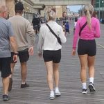 Blonde Teens in Leggings Shorts on Boardwalk w/ families: Fare Holiday Beauties(19)