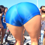 Lovely Teen Babe Bending Over Her Cart in See Through Leggings
