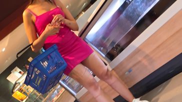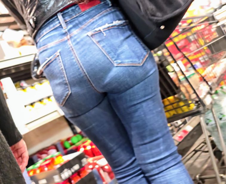 Milf in jeans and leather jacket with vpl