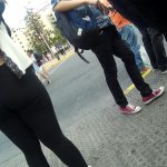 Beautiful blonde nordic girl with her bubble butt in spandex shorts