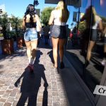 Nice tight ass on tall blonde teen in blue leggings crop top