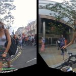 Braless woman pushing her bike – 3D 180 VR ​ – Video
