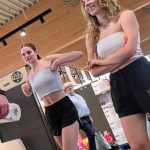 Sisters in shorts and braless