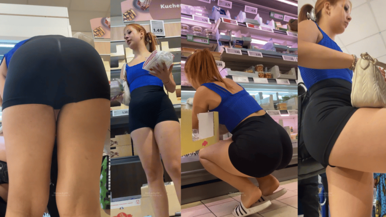 Redhead in tight black shorts in the supermarket – 5:41MIN LENGTH