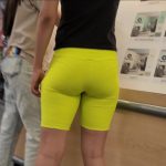Crazy hot brunette teen with a great ass and vtl in lemon spandex shorts