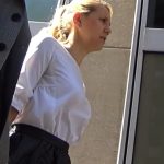 Upskirt – Blonde office chick with white thong