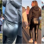Slutty Chick In Shiny Shorts With Her Ass Out
