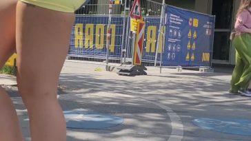 Stunning brunnettes jiggly teen ass in blue shorts